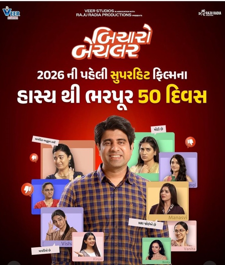 વીર સ્ટુડિયોઝ દ્વારા અને રાજુ રાડિયા પ્રોડક્શનના સહયોગથી નિર્મિત ગુજરાતી ફિલ્મ ‘બિચારો બેચલર’ એ બોક્સ ઓફિસ પર સફળતાપૂર્વક 50 દિવસ…