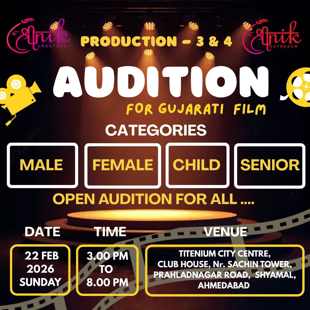 શ્રીનિક પ્રોડક્શન દ્વારા આગામી ગુજરાતી ફિલ્મ માટે અમદાવાદમાં ભવ્ય ‘ઓપન ઓડિશન’નું આયોજન